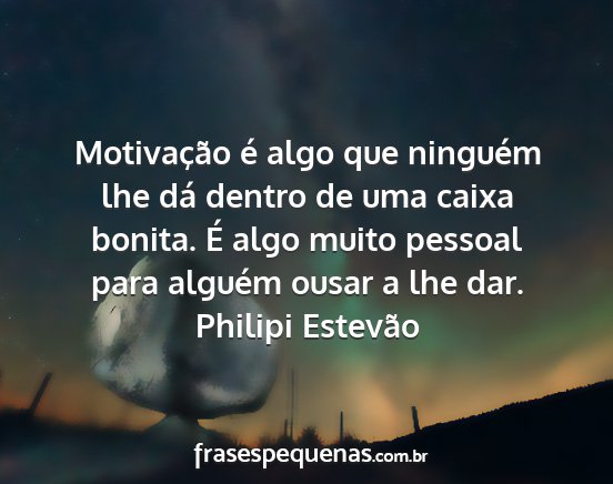 Motivação é algo que ninguém lhe dá dentro de uma caixa bonita. É algo muito pessoal para alguém ousar a lhe dar.Philipi Estevão