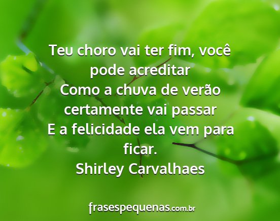 E a felicidade ela vem para ficar.Shirley Carvalhaes