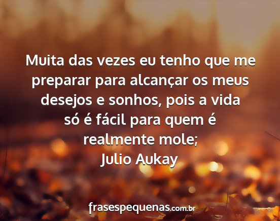 Muita das vezes eu tenho que me preparar para alcançar os meus desejos e sonhos, pois a vida só é fácil para quem é realmente mole;Julio Aukay