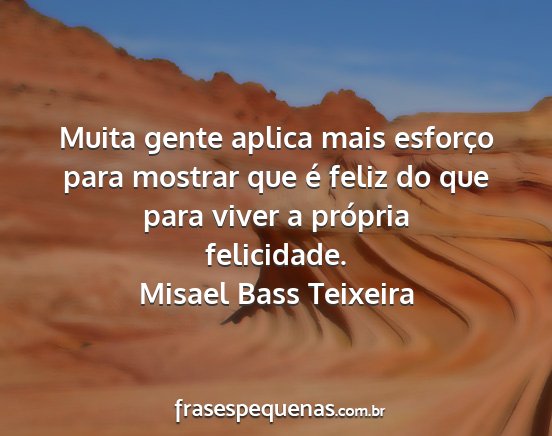 Muita gente aplica mais esforço para mostrar que é feliz do que para viver a própria felicidade.Misael Bass Teixeira