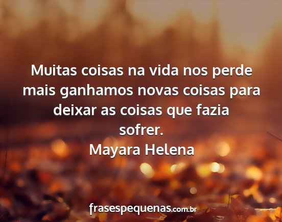 Muitas coisas na vida nos perde mais ganhamos novas coisas para deixar as coisas que fazia sofrer.Mayara Helena