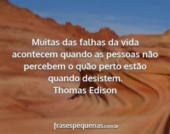 Muitas das falhas da vida acontecem quando as pessoas não percebem o quão perto estão quando desistem.Thomas Edison