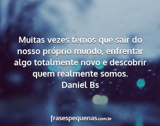 Muitas vezes temos que sair do nosso próprio mundo, enfrentar algo totalmente novo e descobrir quem realmente somos.Daniel Bs
