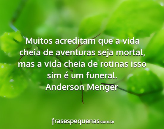 Muitos acreditam que a vida cheia de aventuras seja mortal, mas a vida cheia de rotinas isso sim é um funeral.Anderson Menger