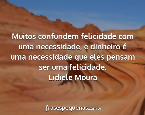 Muitos confundem felicidade com uma necessidade, e dinheiro é uma necessidade que eles pensam ser uma felicidade.Lidiele Moura