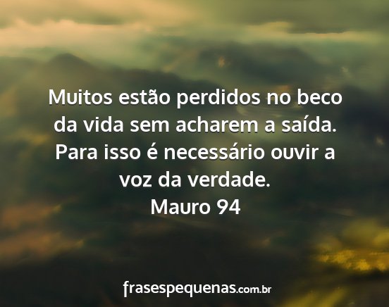 Muitos estão perdidos no beco da vida sem acharem a saída. Para isso é necessário ouvir a voz da verdade.Mauro 94