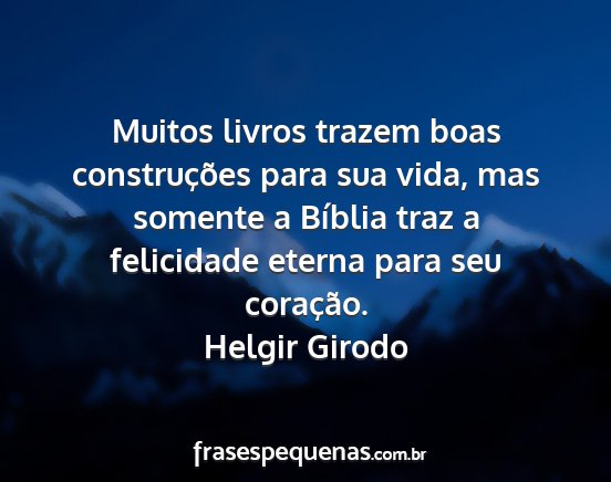 Muitos livros trazem boas construções para sua vida, mas somente a Bíblia traz a felicidade eterna para seu coração.Helgir Girodo