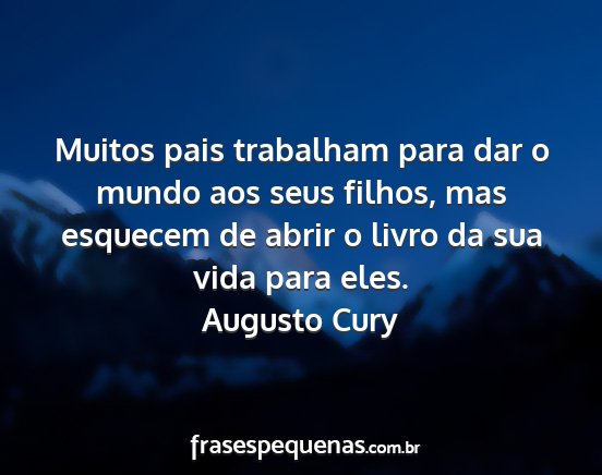 Muitos pais trabalham para dar o mundo aos seus filhos, mas esquecem de abrir o livro da sua vida para eles.Augusto Cury