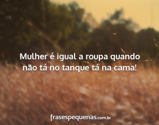 Mulher é igual a roupa quando não tá no tanque tá na cama!