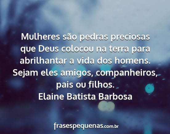 Mulheres são pedras preciosas que Deus colocou na terra para abrilhantar a vida dos homens. Sejam eles amigos, companheiros, pais ou filhos.Elaine Batista Barbosa