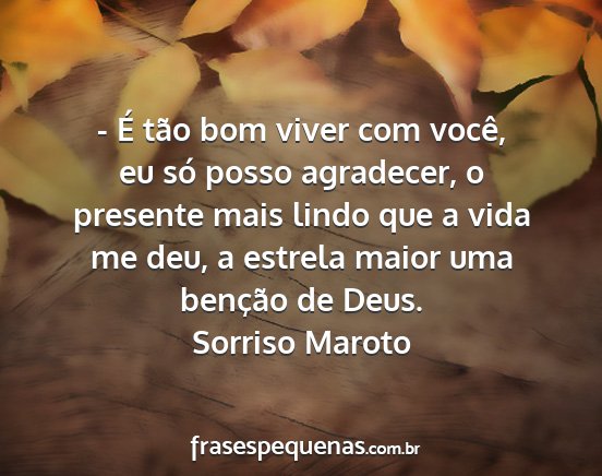 - É tão bom viver com você, eu só posso agradecer, o presente mais lindo que a vida me deu, a estrela maior uma benção de Deus.Sorriso Maroto