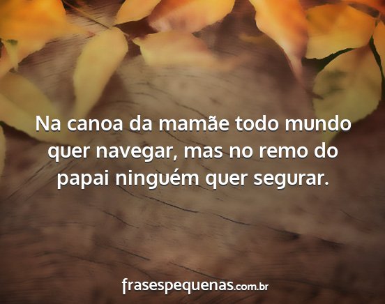 Na canoa da mamãe todo mundo quer navegar, mas no remo do papai ninguém quer segurar.