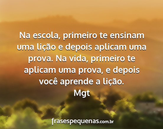 Na escola, primeiro te ensinam uma lição e depois aplicam uma prova. Na vida, primeiro te aplicam uma prova, e depois você aprende a lição.Mgt