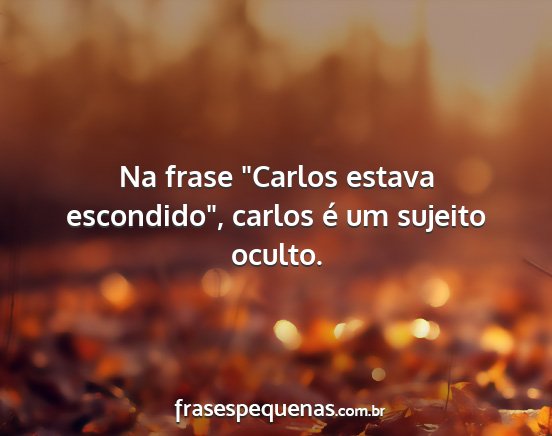 Na frase "Carlos estava escondido", carlos é um sujeito oculto.
