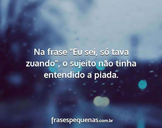 Na frase "Eu sei, só tava zuando", o sujeito não tinha entendido a piada.