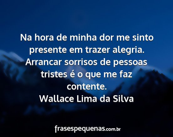 Na hora de minha dor me sinto presente em trazer alegria. Arrancar sorrisos de pessoas tristes é o que me faz contente.Wallace Lima da Silva