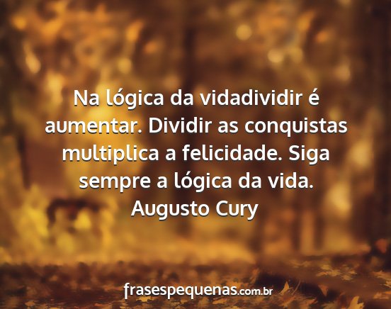 Na lógica da vidadividir é aumentar. Dividir as conquistas multiplica a felicidade. Siga sempre a lógica da vida.Augusto Cury