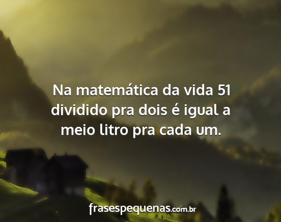 Na matemática da vida 51 dividido pra dois é igual a meio litro pra cada um.