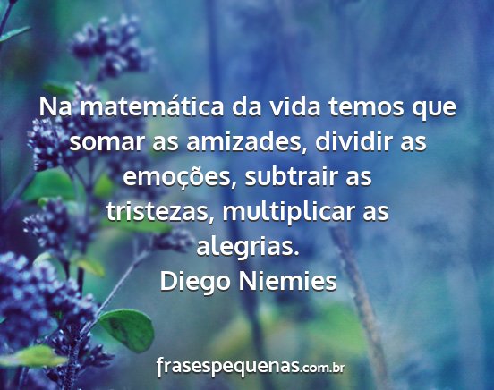 Na matemática da vida temos que somar as amizades, dividir as emoções, subtrair as tristezas, multiplicar as alegrias.Diego Niemies