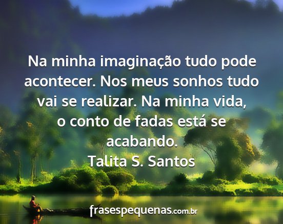 Na minha imaginação tudo pode acontecer. Nos meus sonhos tudo vai se realizar. Na minha vida, o conto de fadas está se acabando.Talita S. Santos
