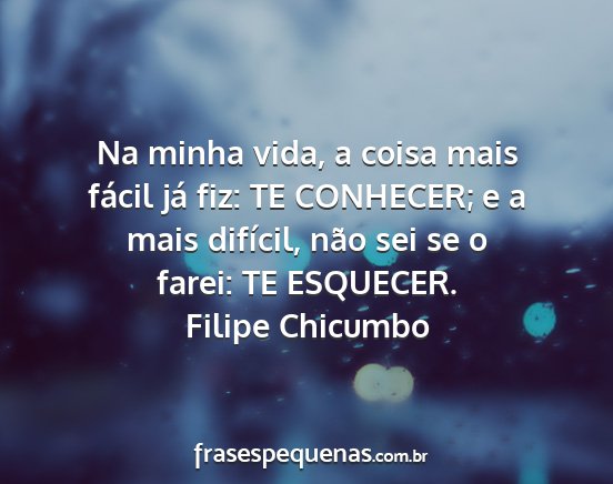 Na minha vida, a coisa mais fácil já fiz: TE CONHECER; e a mais difícil, não sei se o farei: TE ESQUECER.Filipe Chicumbo