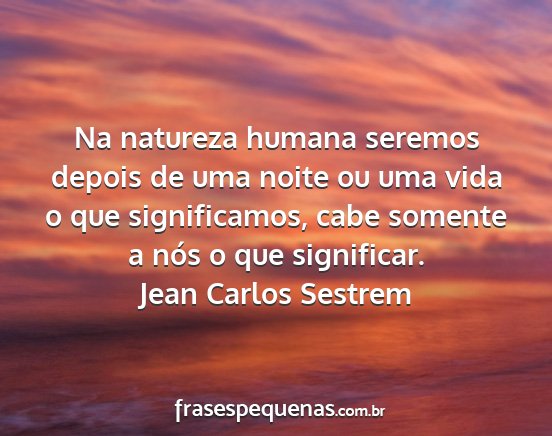 Na natureza humana seremos depois de uma noite ou uma vida o que significamos, cabe somente a nós o que significar.Jean Carlos Sestrem