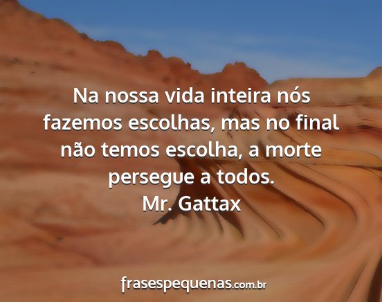 Na nossa vida inteira nós fazemos escolhas, mas no final não temos escolha, a morte persegue a todos.Mr. Gattax