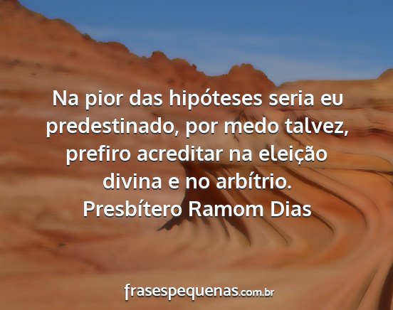 Na pior das hipóteses seria eu predestinado, por medo talvez, prefiro acreditar na eleição divina e no arbítrio.Presbítero Ramom Dias