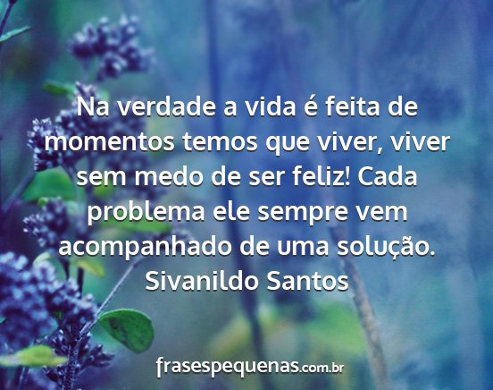 Na verdade a vida é feita de momentos temos que viver, viver sem medo de ser feliz! Cada problema ele sempre vem acompanhado de uma solução.Sivanildo Santos