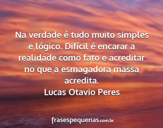 Na verdade é tudo muito simples e lógico. Difícil é encarar a realidade como fato e acreditar no que a esmagadora massa acredita.Lucas Otavio Peres
