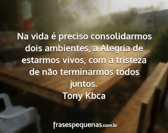 Na vida é preciso consolidarmos dois ambientes, a Alegria de estarmos vivos, com a tristeza de não terminarmos todos juntos.Tony Kbca