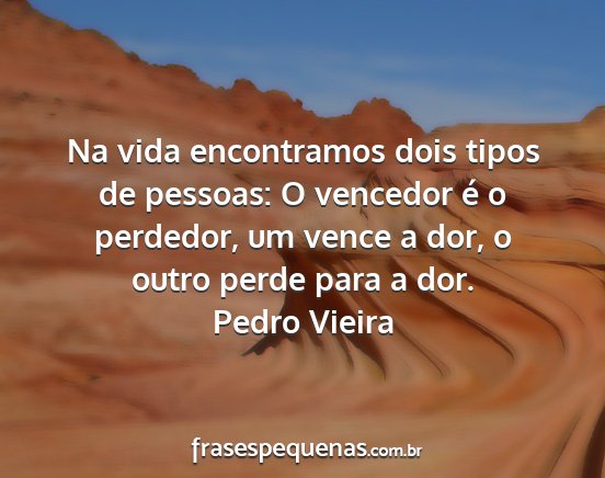 Na vida encontramos dois tipos de pessoas: O vencedor é o perdedor, um vence a dor, o outro perde para a dor.Pedro Vieira