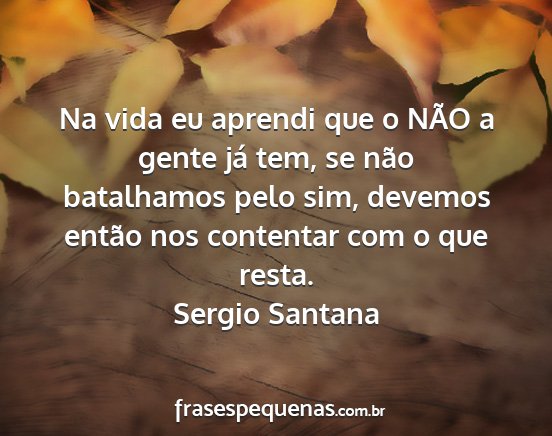 Na vida eu aprendi que o NÃO a gente já tem, se não batalhamos pelo sim, devemos então nos contentar com o que resta.Sergio Santana