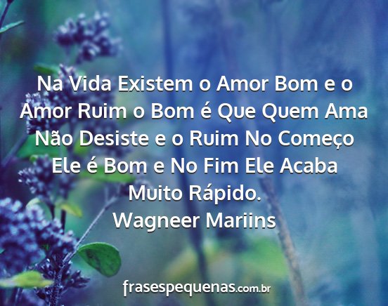 Na Vida Existem o Amor Bom e o Amor Ruim o Bom é Que Quem Ama Não Desiste e o Ruim No Começo Ele é Bom e No Fim Ele Acaba Muito Rápido.Wagneer Mariins
