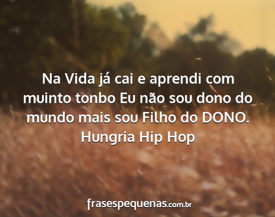Na Vida já cai e aprendi com muinto tonbo Eu não sou dono do mundo mais sou Filho do DONO.Hungria Hip Hop