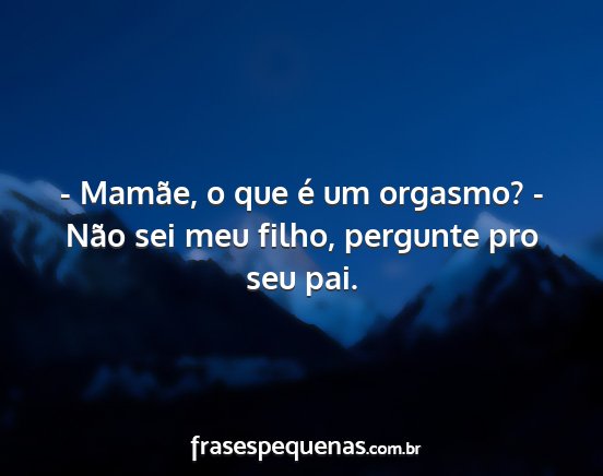 - Mamãe, o que é um orgasmo? - Não sei meu filho, pergunte pro seu pai.