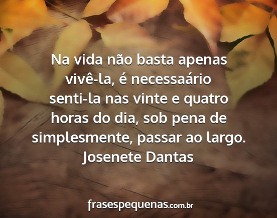 Na vida não basta apenas vivê-la, é necessaário senti-la nas vinte e quatro horas do dia, sob pena de simplesmente, passar ao largo.Josenete Dantas
