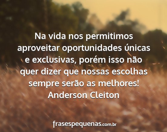 Na vida nos permitimos aproveitar oportunidades únicas e exclusivas, porém isso não quer dizer que nossas escolhas sempre serão as melhores!Anderson Cleiton