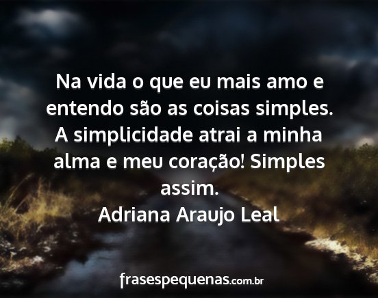 Na vida o que eu mais amo e entendo são as coisas simples. A simplicidade atrai a minha alma e meu coração! Simples assim.Adriana Araujo Leal