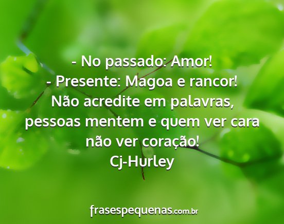 Não acredite em palavras, pessoas mentem e quem ver cara não ver coração!Cj-Hurley