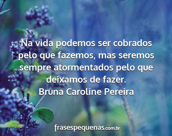 Na vida podemos ser cobrados pelo que fazemos, mas seremos sempre atormentados pelo que deixamos de fazer.Bruna Caroline Pereira