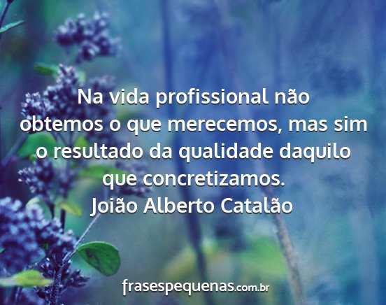Na vida profissional não obtemos o que merecemos, mas sim o resultado da qualidade daquilo que concretizamos.Joião Alberto Catalão