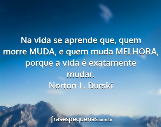 Na vida se aprende que, quem morre MUDA, e quem muda MELHORA, porque a vida é exatamente mudar.Norton L. Durski