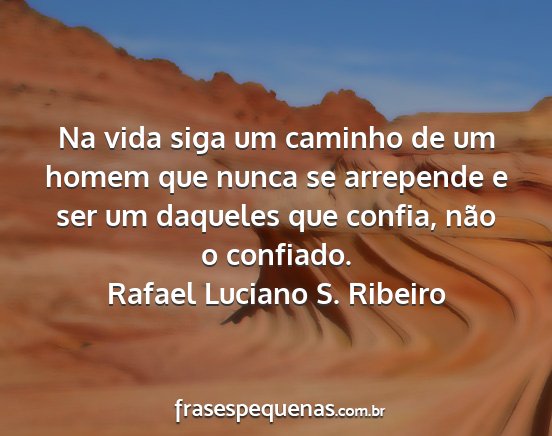 Na vida siga um caminho de um homem que nunca se arrepende e ser um daqueles que confia, não o confiado.Rafael Luciano S. Ribeiro