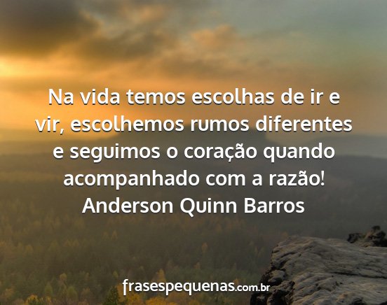 Na vida temos escolhas de ir e vir, escolhemos rumos diferentes e seguimos o coração quando acompanhado com a razão!Anderson Quinn Barros
