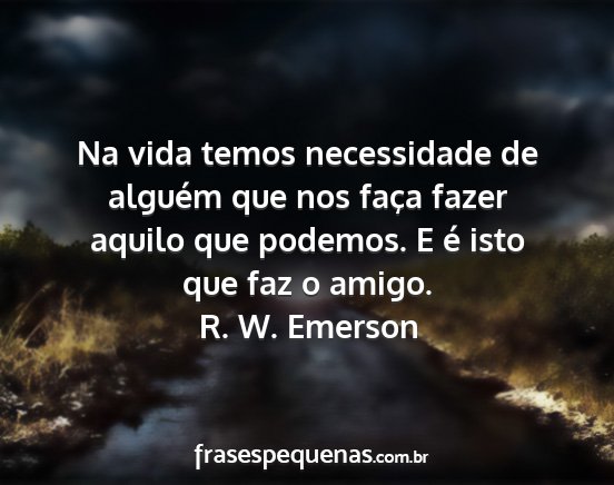 Na vida temos necessidade de alguém que nos faça fazer aquilo que podemos. E é isto que faz o amigo.R. W. Emerson