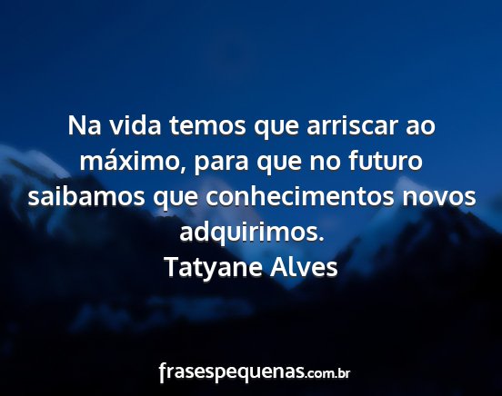 Na vida temos que arriscar ao máximo, para que no futuro saibamos que conhecimentos novos adquirimos.Tatyane Alves