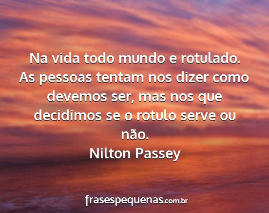 As pessoas tentam nos dizer como devemos ser, mas nos que decidimos se o rotulo serve ou não.Nilton Passey
