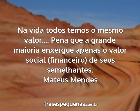Na vida todos temos o mesmo valor.... Pena que a grande maioria enxergue apenas o valor social (financeiro) de seus semelhantes.Mateus Mendes