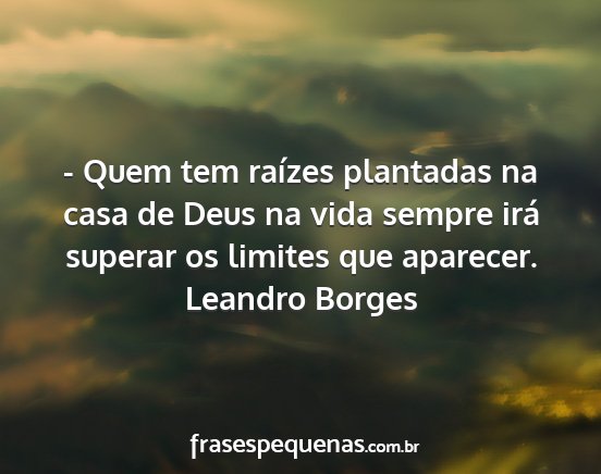 - Quem tem raízes plantadas na casa de Deus na vida sempre irá superar os limites que aparecer.Leandro Borges